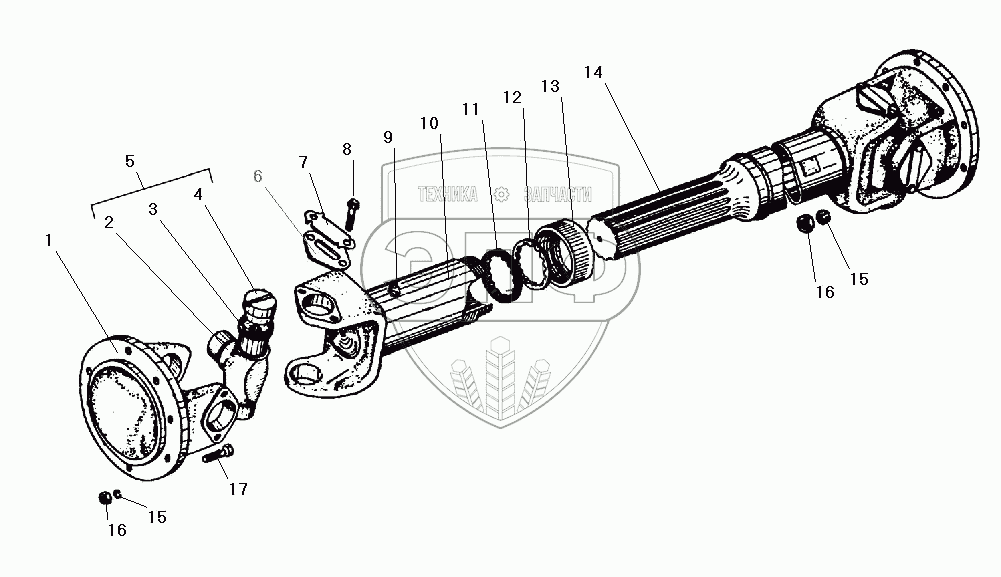 Каталог запасных частей к технике: УралАЗ УРАЛ-5557-40. Карданный вал среднего моста
