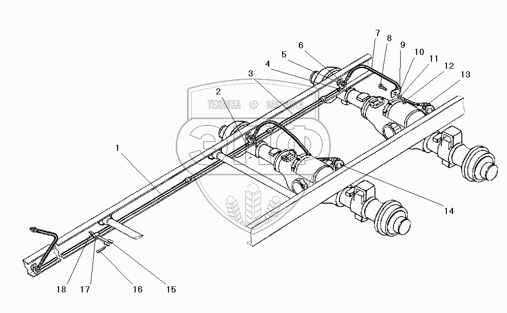 Каталог запасных частей к технике: УралАЗ УРАЛ-5557-40. Привод блокировки межколесных дифференциалов