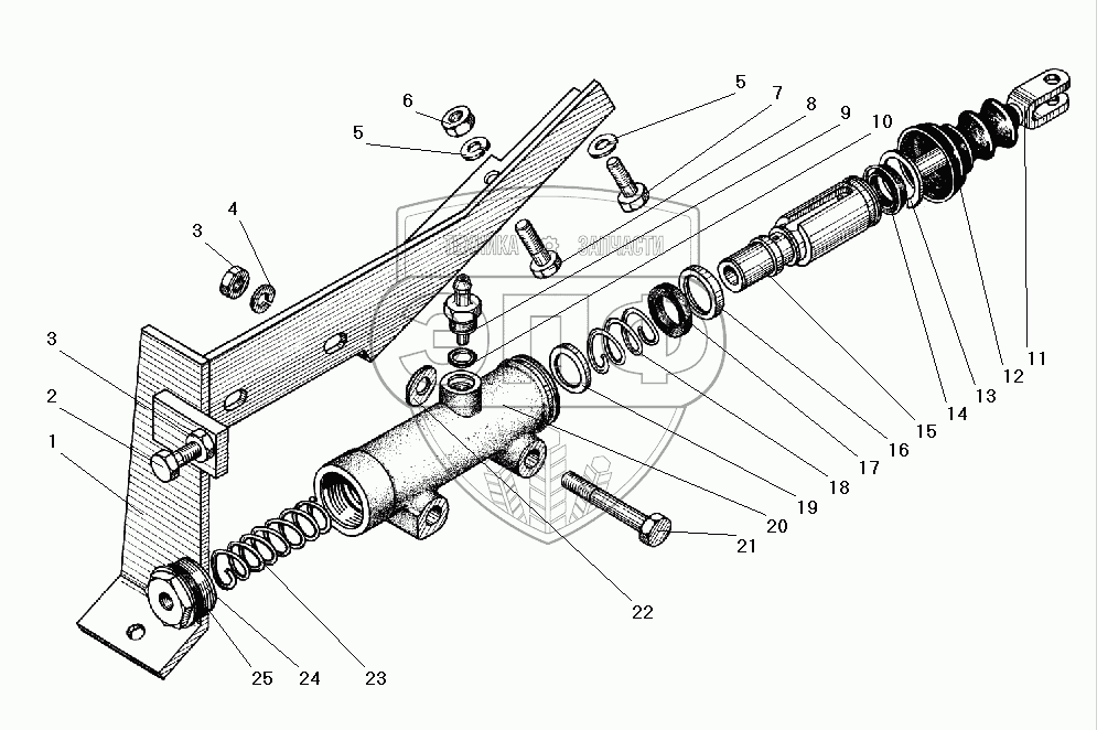 Каталог запасных частей к технике: УралАЗ УРАЛ-5557-40. Цилиндр гидравлический