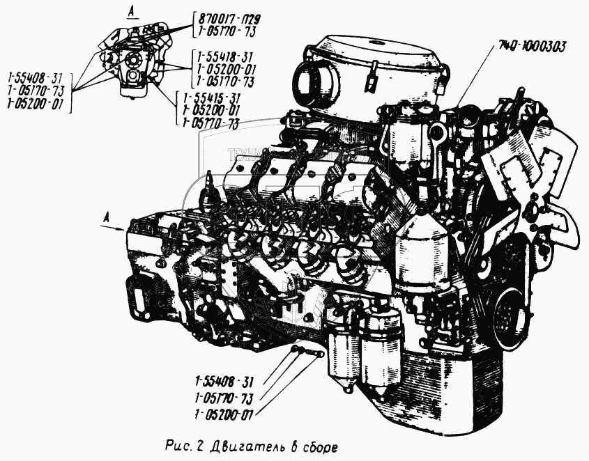 Каталог запасных частей к технике: УралАЗ УРАЛ-5557. Двигатель в сборе