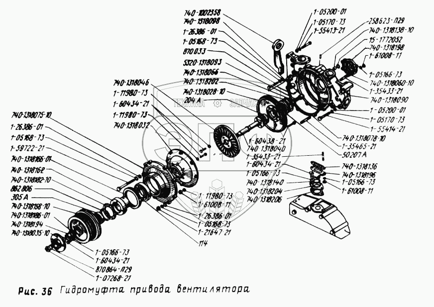 Каталог запасных частей к технике: УралАЗ УРАЛ-5557. Гидромуфта привода вентилятора