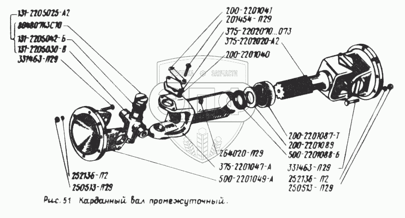 Каталог запасных частей к технике: УралАЗ УРАЛ-5557. Карданный вал промежуточный