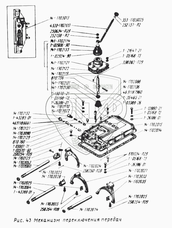 Каталог запасных частей к технике: УралАЗ УРАЛ-5557. Механизм переключения передач