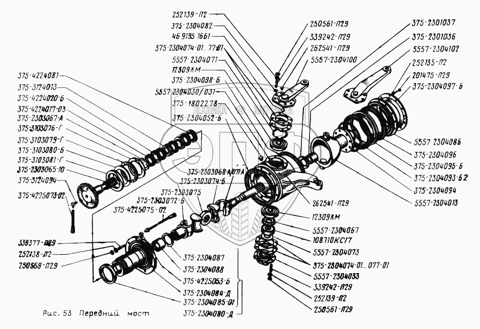 Каталог запасных частей к технике: УралАЗ УРАЛ-5557. Передний мост