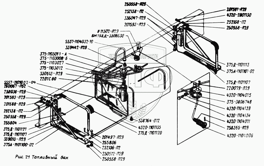 Каталог запасных частей к технике: УралАЗ УРАЛ-5557. Топливный бак