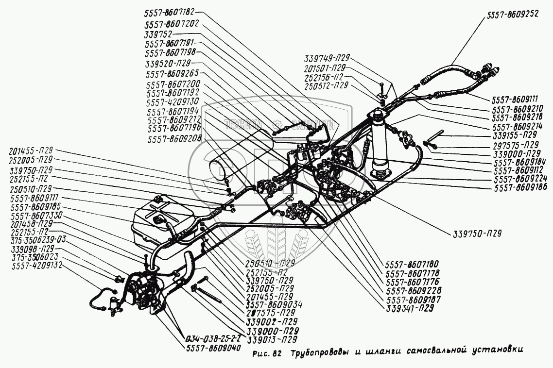 Каталог запасных частей к технике: УралАЗ УРАЛ-5557. Трубопроводы и шланги самосвальной установки