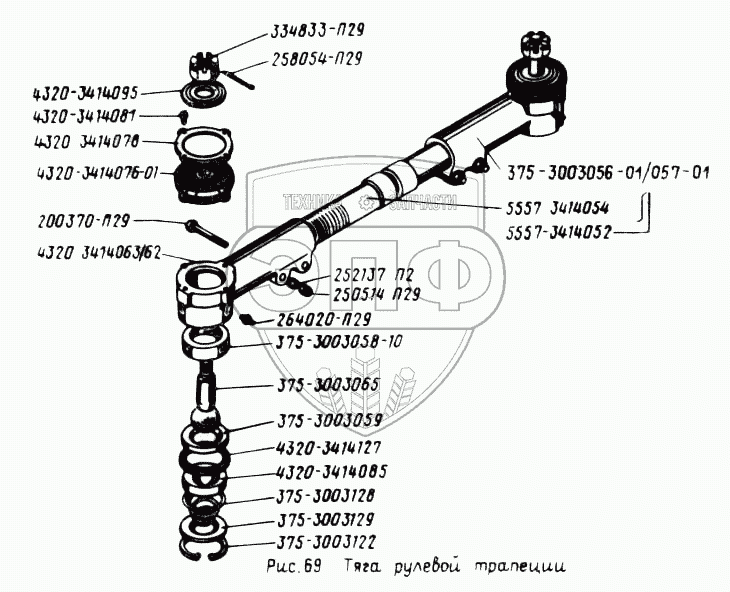 Каталог запасных частей к технике: УралАЗ УРАЛ-5557. Тяга рулевой трапеции