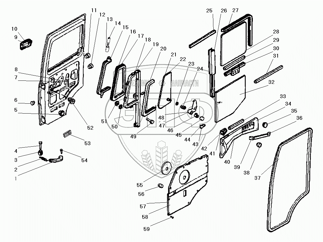 Каталог запасных частей к технике: УралАЗ УРАЛ-63674. Двери кабины