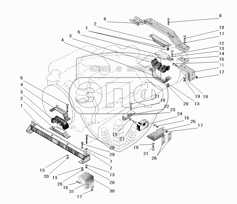 | 25 | 6363-1001050 | Кронштейн двигателя задний | Нет на складе | |
