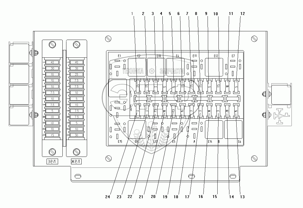Каталог запасных частей к технике: УралАЗ УРАЛ-63674. Предохранители на центральном распределительном устройстве