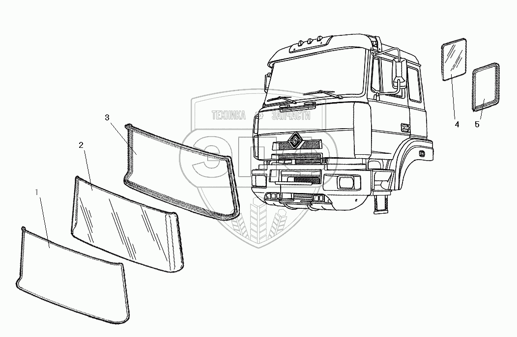 Каталог запасных частей к технике: УралАЗ УРАЛ-63674. Стекло ветровое