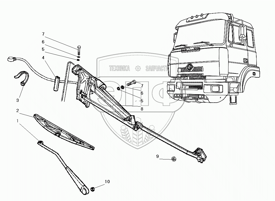 Каталог запасных частей к технике: УралАЗ УРАЛ-63674. Стеклоочиститель