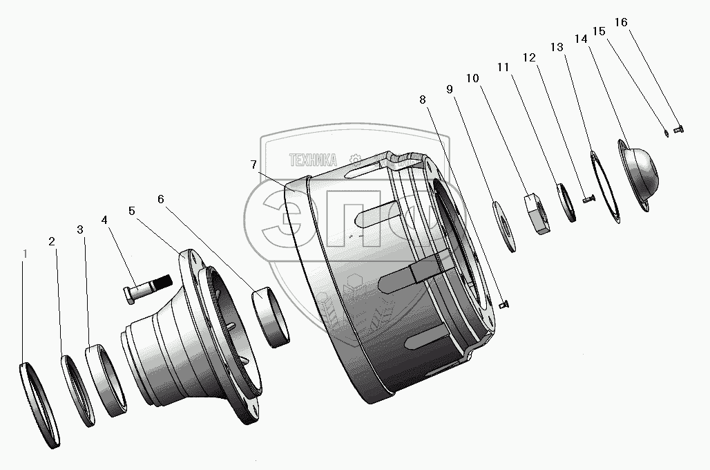 Каталог запасных частей к технике: УралАЗ УРАЛ-63674. Ступица переднего колеса