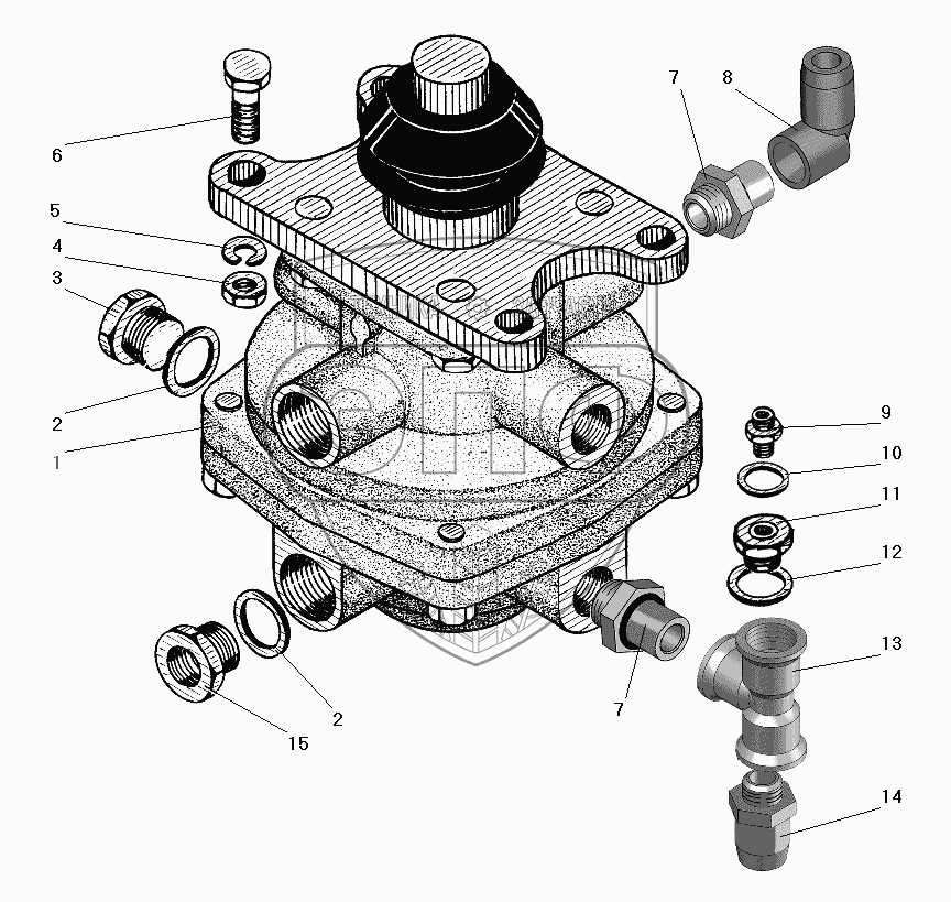 Каталог запасных частей к технике: УралАЗ УРАЛ-63674. Установка тормозного крана