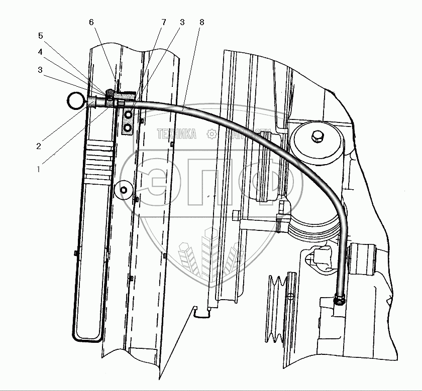 Каталог запасных частей к технике: УралАЗ УРАЛ-63674. Установка указателя уровня масла