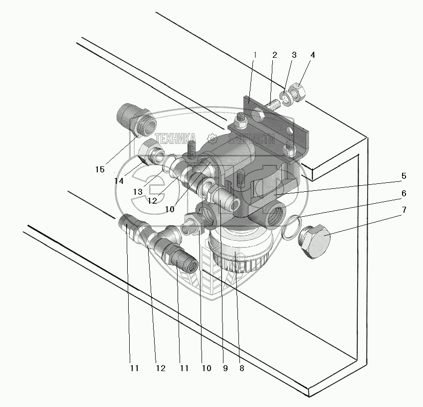 Каталог запасных частей к технике: УралАЗ УРАЛ-63674. Установка ускорительного клапана