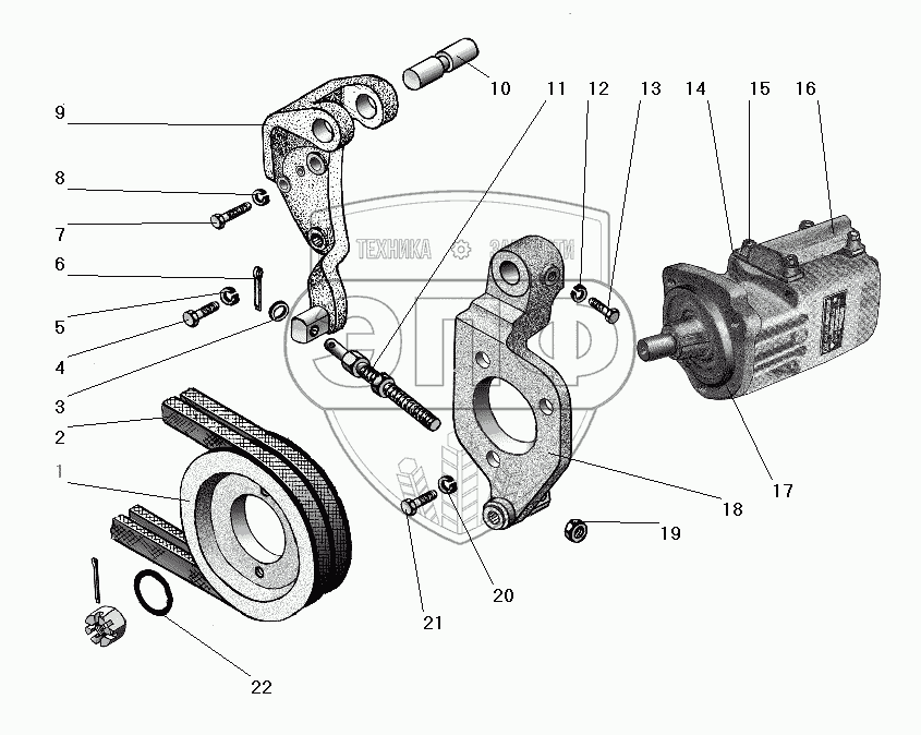 Каталог запасных частей к технике: УралАЗ УРАЛ-63685. Установка насоса гидроусилителя