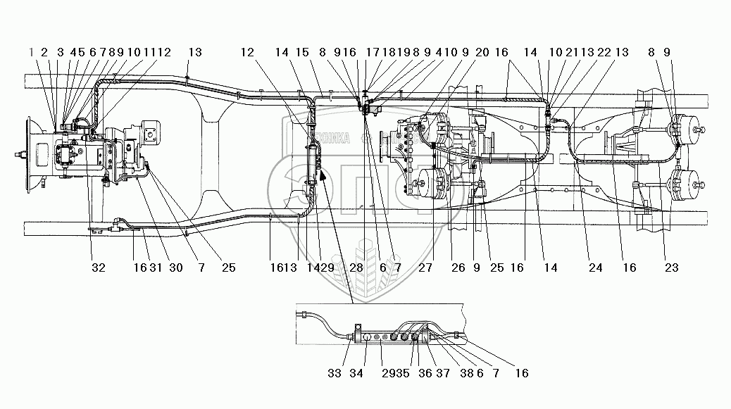 Каталог запасных частей к технике: УралАЗ УРАЛ-63685. Установка пневмоуправления агрегатами трансмиссии