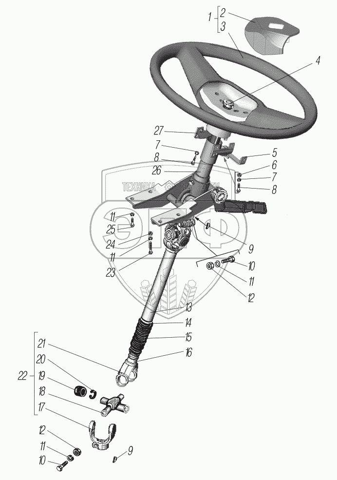 Каталог запасных частей к технике: УралАЗ УРАЛ-63704. Колесо и вал рулевого управления