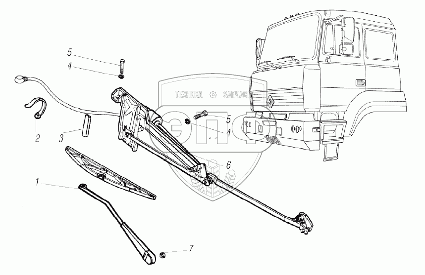 Каталог запасных частей к технике: УралАЗ УРАЛ-63704. Стеклоочиститель