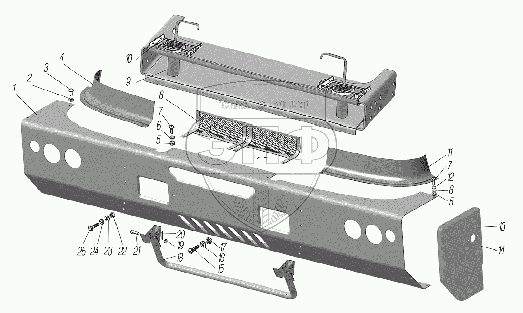 Каталог запасных частей к технике: УралАЗ УРАЛ-6370-1121. Установка переднего буфера