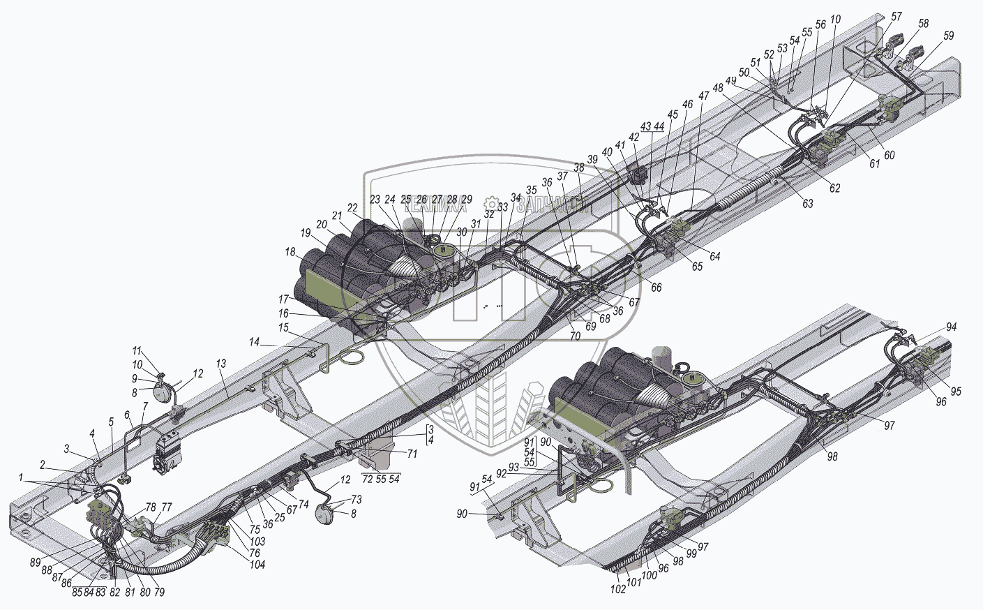 Каталог запасных частей к технике: УралАЗ УРАЛ-6370-1151. Установка пневматических тормозов