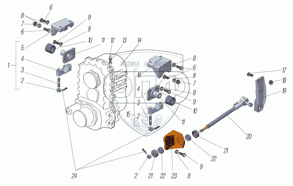 | 23 | 6370-1801047 | Кронштейн реактивной тяги раздаточной коробки нижний | Нет на складе | |