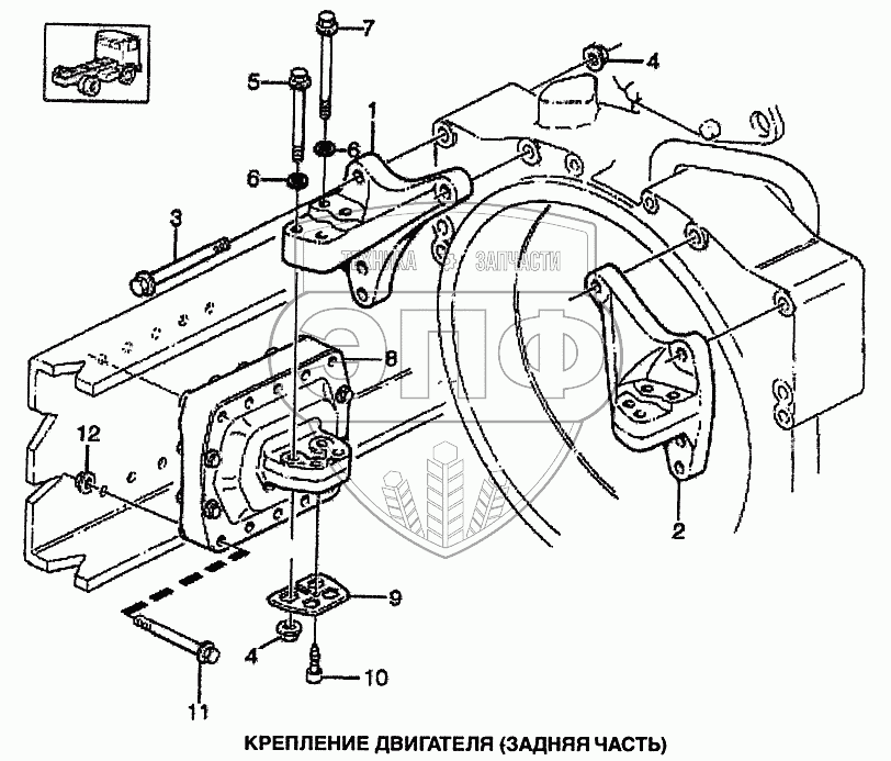 Каталог запасных частей к технике: Volvo FH12. Крепление двигателя (задняя часть)