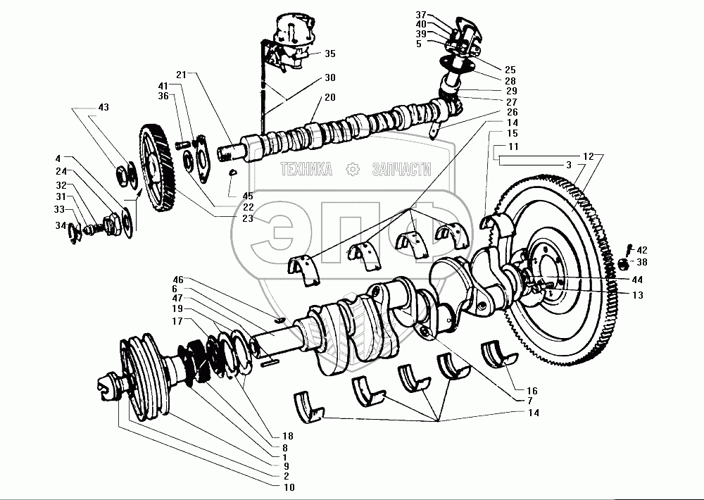 Каталог запасных частей к технике: ЗИЛ-130. Коленчатый вал, распределительный вал, маховик