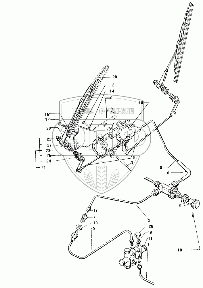 Каталог запасных частей к технике: ЗИЛ-130. Установка стеклоочистителя
