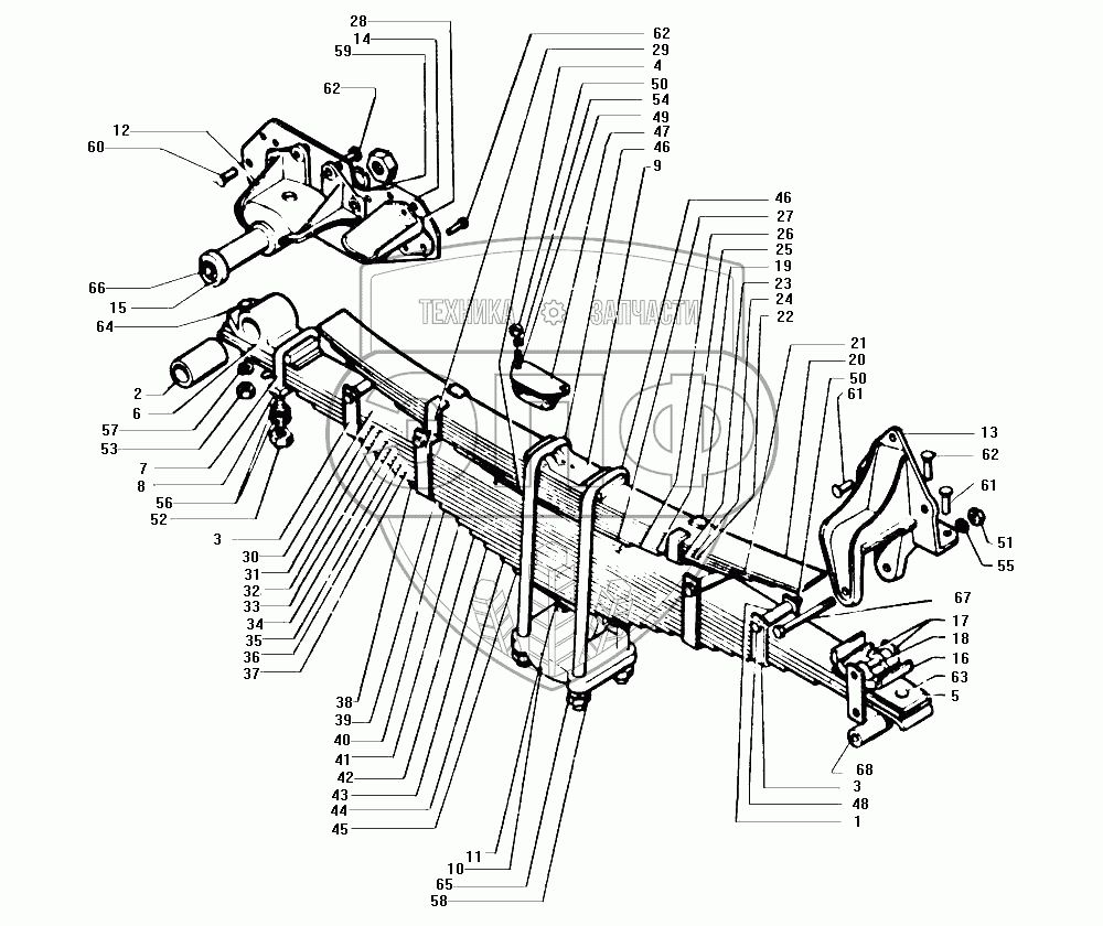 Каталог запасных частей к технике: ЗИЛ-130. Задняя подвеска автомобиля