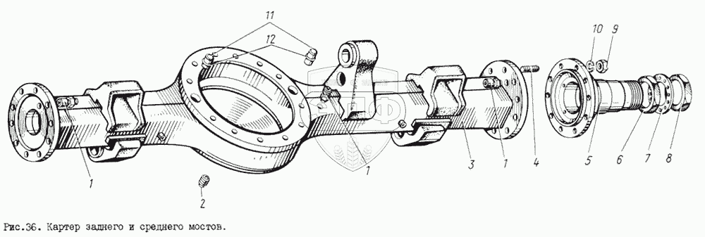 Каталог запасных частей к технике: ЗИЛ-131. Картер заднего и среднего мостов