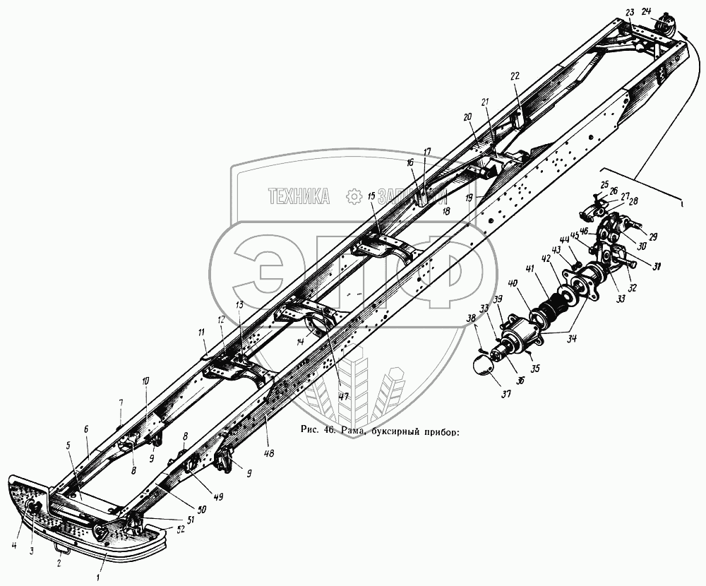 Каталог запасных частей к технике: ЗИЛ-133ГЯ. Рама, буксирный прибор