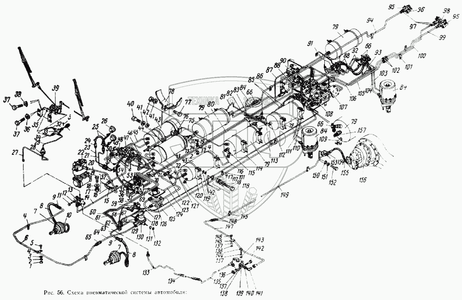Каталог запасных частей к технике: ЗИЛ-133ГЯ. Схема пневматической системы автомобиля