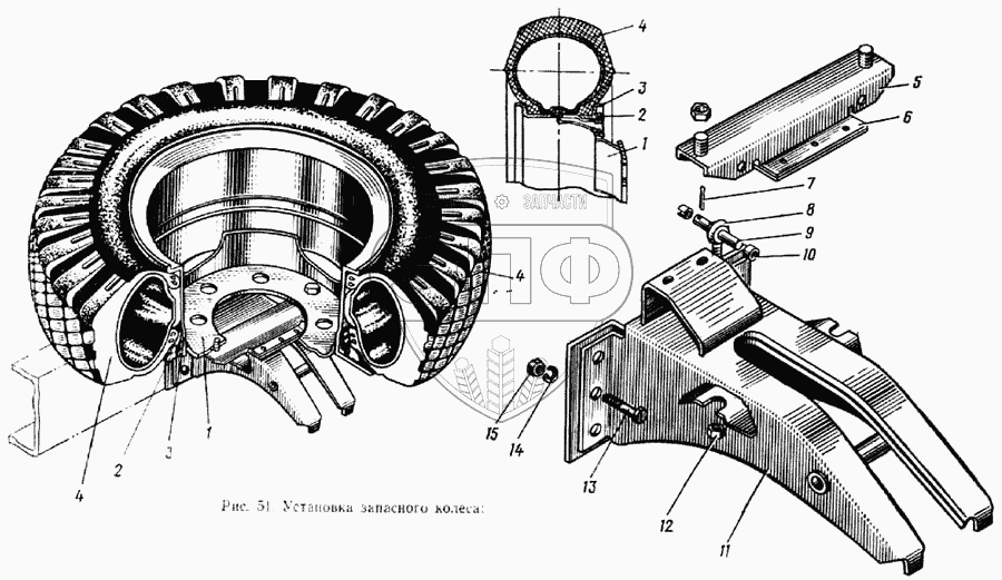 Каталог запасных частей к технике: ЗИЛ-133ГЯ. Установка запасного колеса