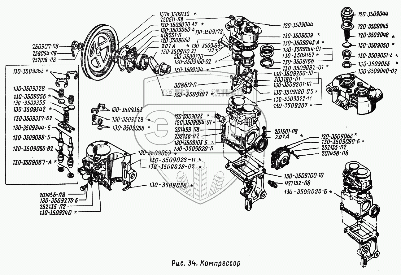 Каталог запасных частей к технике: ЗИЛ-431410 (130). Компрессор
