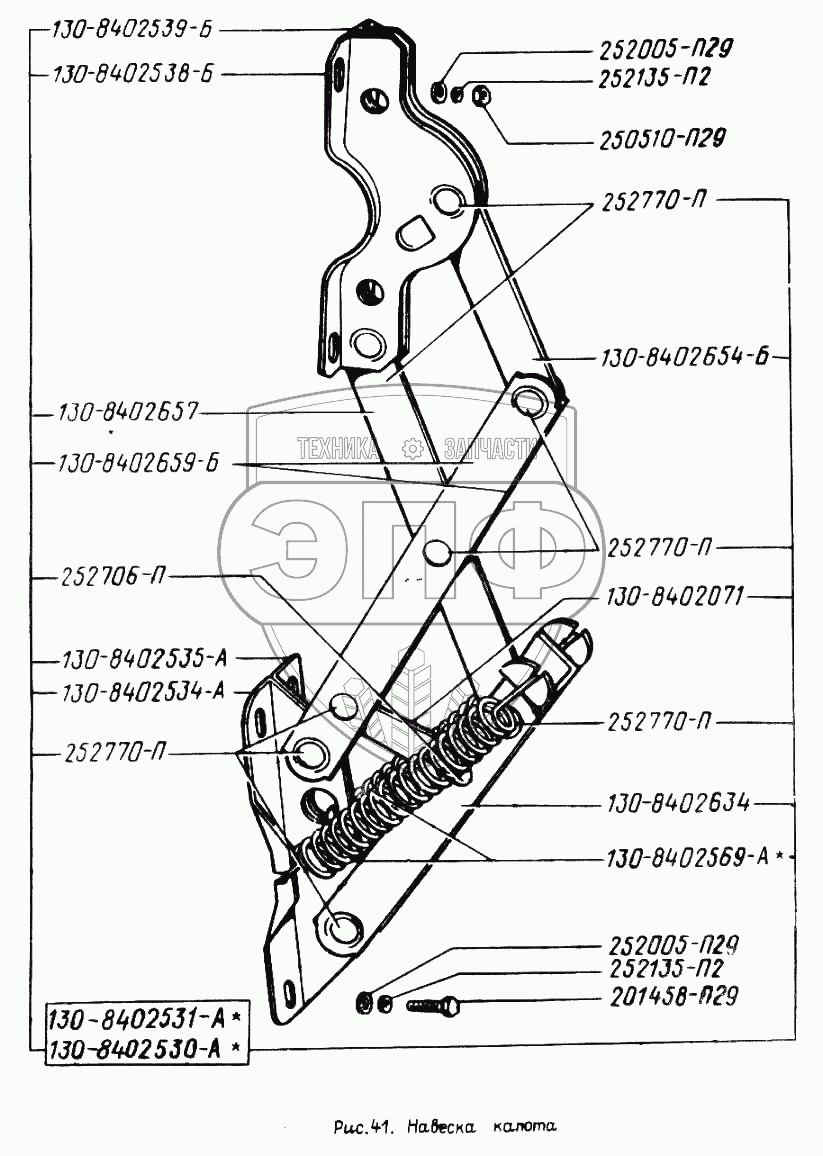 Каталог запасных частей к технике: ЗИЛ-431410 (130). Навеска капота