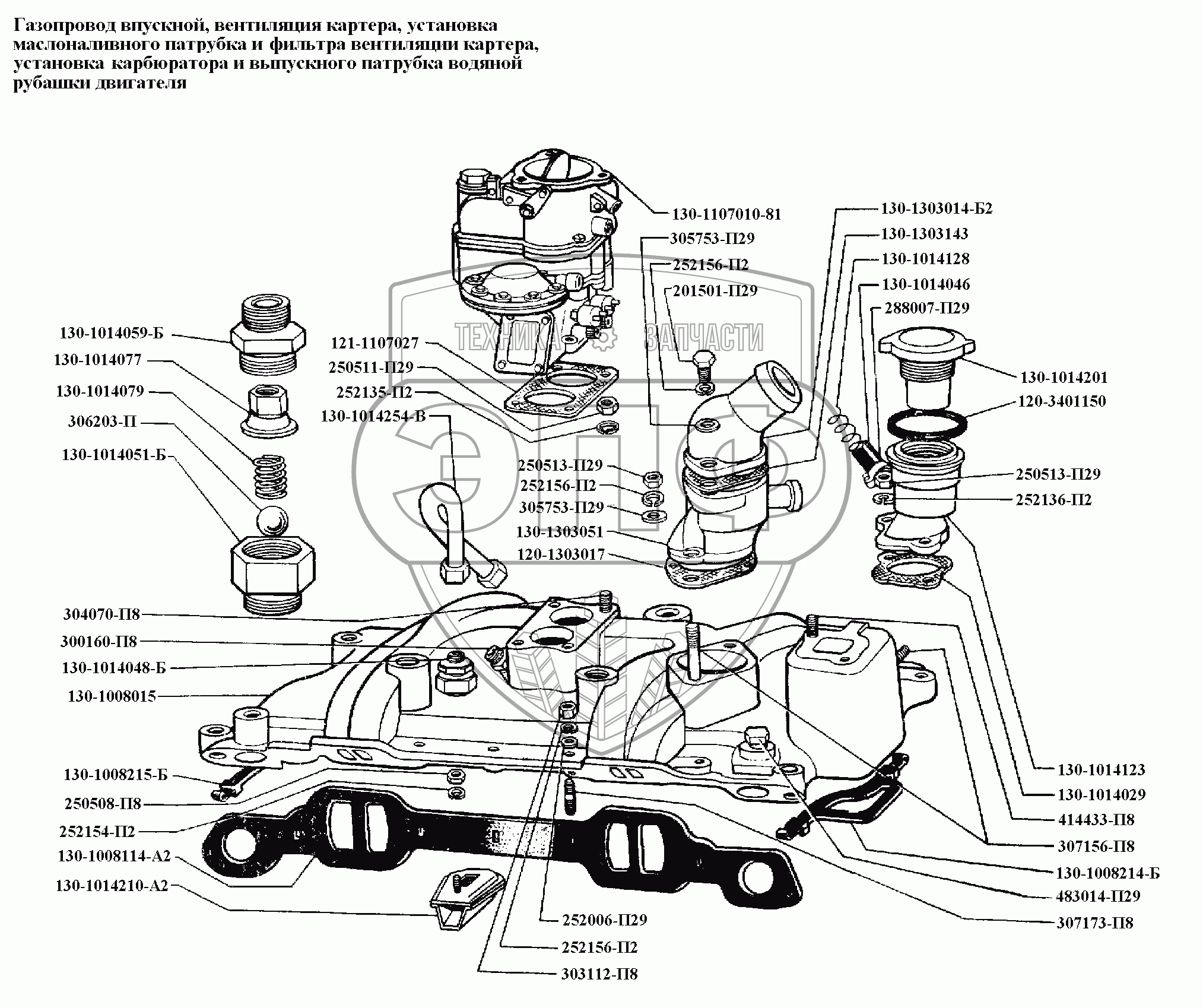 Каталог запасных частей к технике: ЗИЛ-431416. Двигатель\Газопровод впускной,
