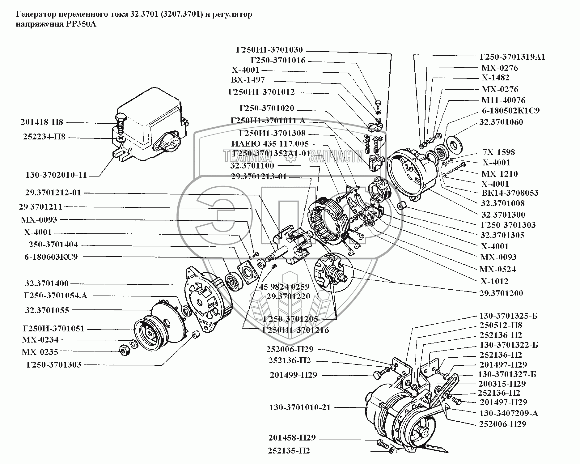 32.3701 | 32.3701 | Генератор переменного тока 32.3701(3207.3701) и регулятор напряжения РР350А | Нет на складе | |