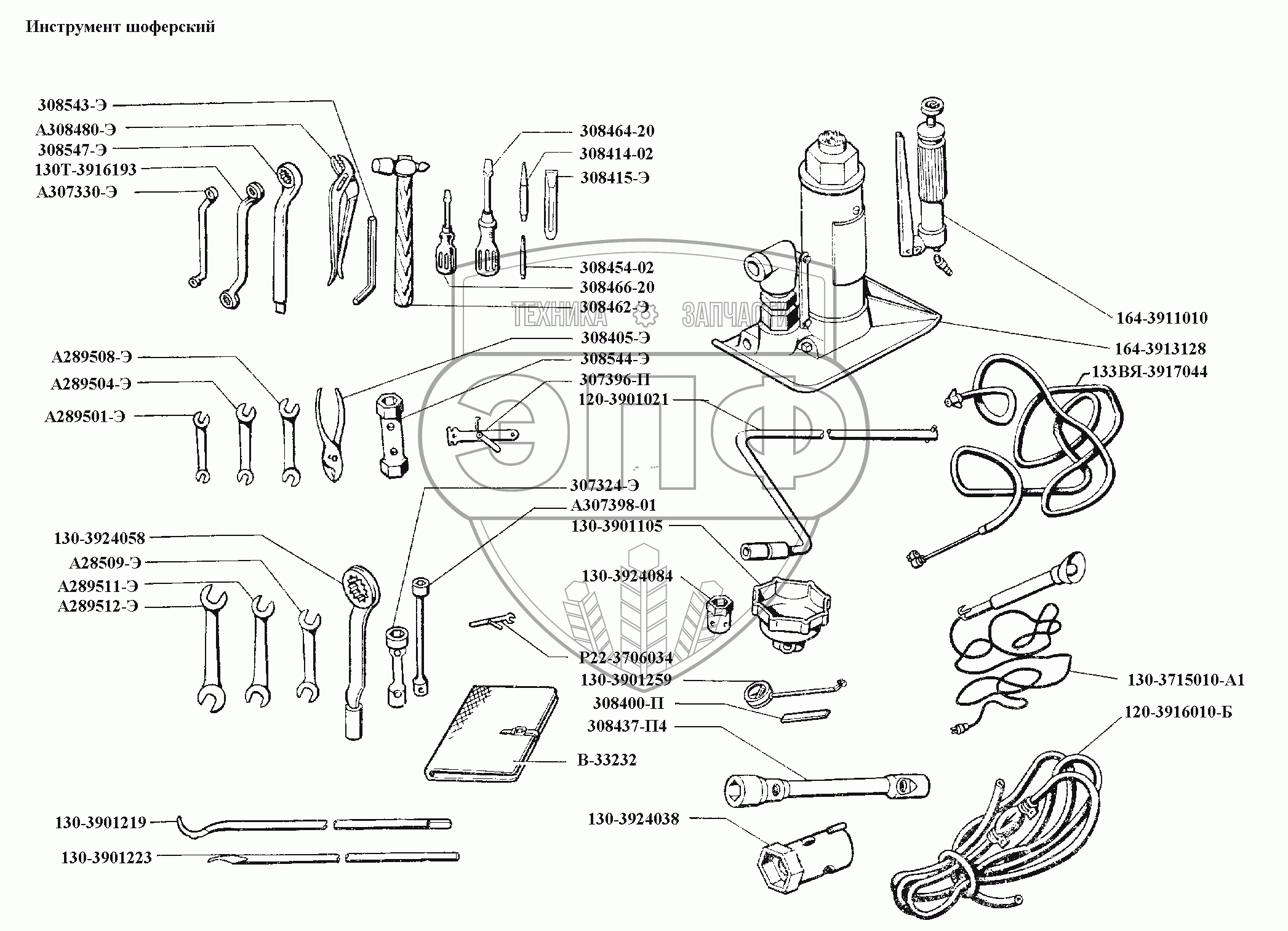 Каталог запасных частей к технике: ЗИЛ-431416. Инструмент и принадлежности\Инструмент шоферский