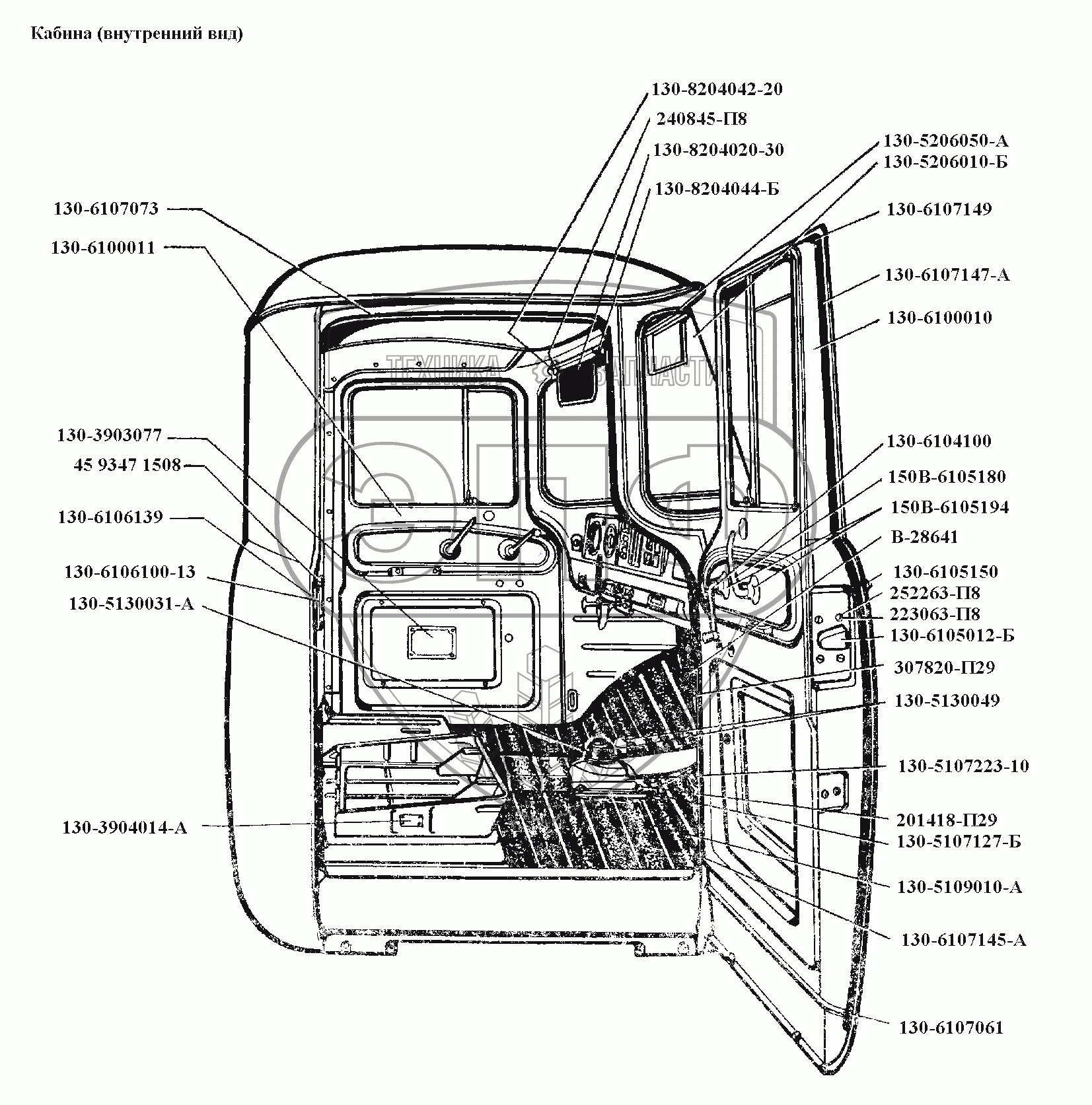 Каталог запасных частей к технике: ЗИЛ-431416. Кабина\Кабина (внутренний вид)
