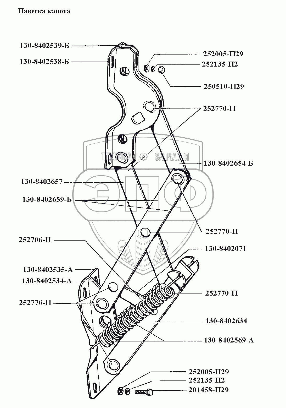 Каталог запасных частей к технике: ЗИЛ-431416. Оперение\Навеска капота