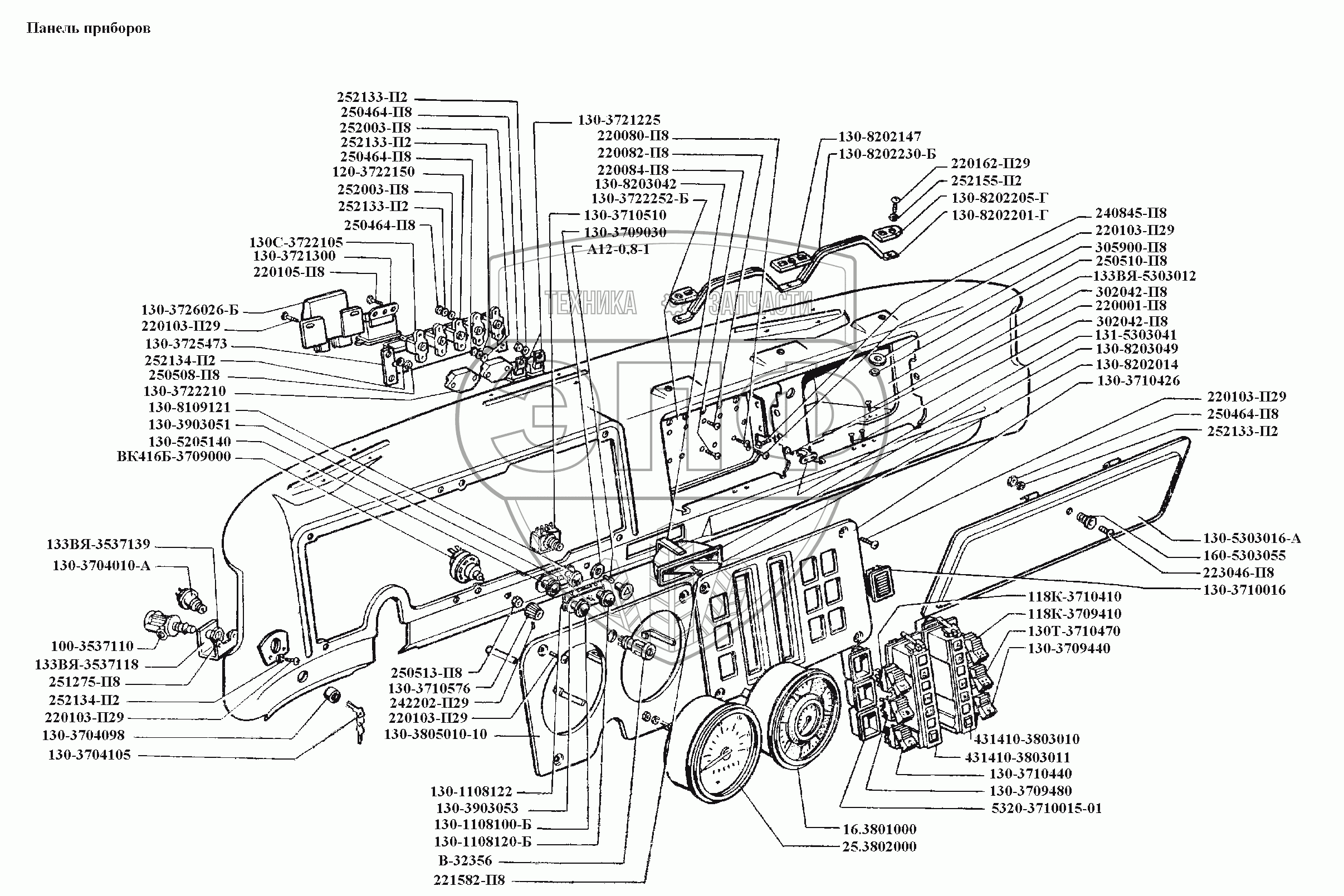 Каталог запасных частей к технике: ЗИЛ-431416. Приборы\Панель приборов