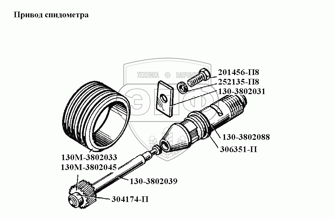 Каталог запасных частей к технике: ЗИЛ-431416. Приборы\Привод спидометра