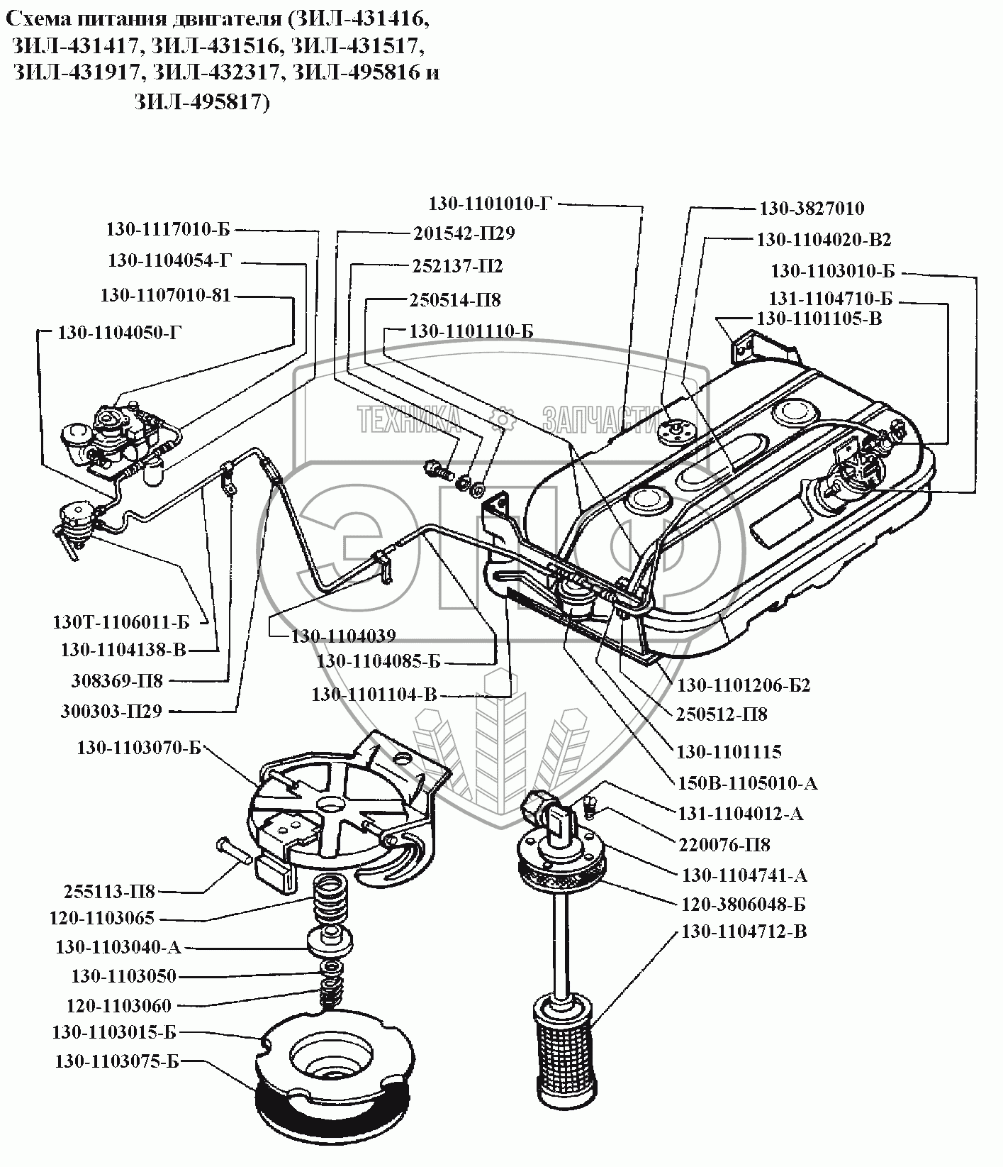 Каталог запасных частей к технике: ЗИЛ-431416. Система питания\Схема питания двигателя
