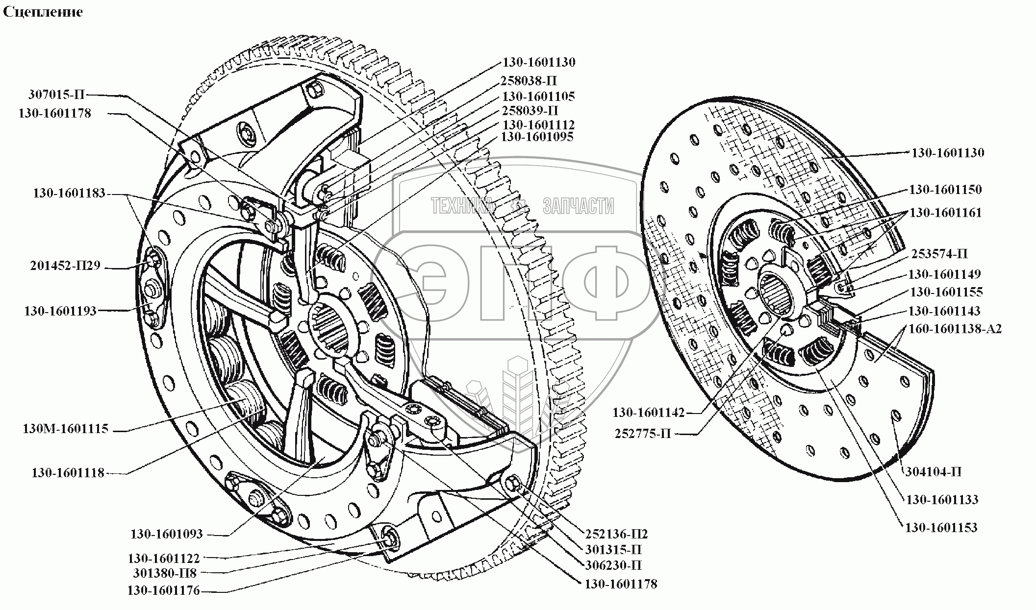 Каталог запасных частей к технике: ЗИЛ-431416. Сцепление\Сцепление