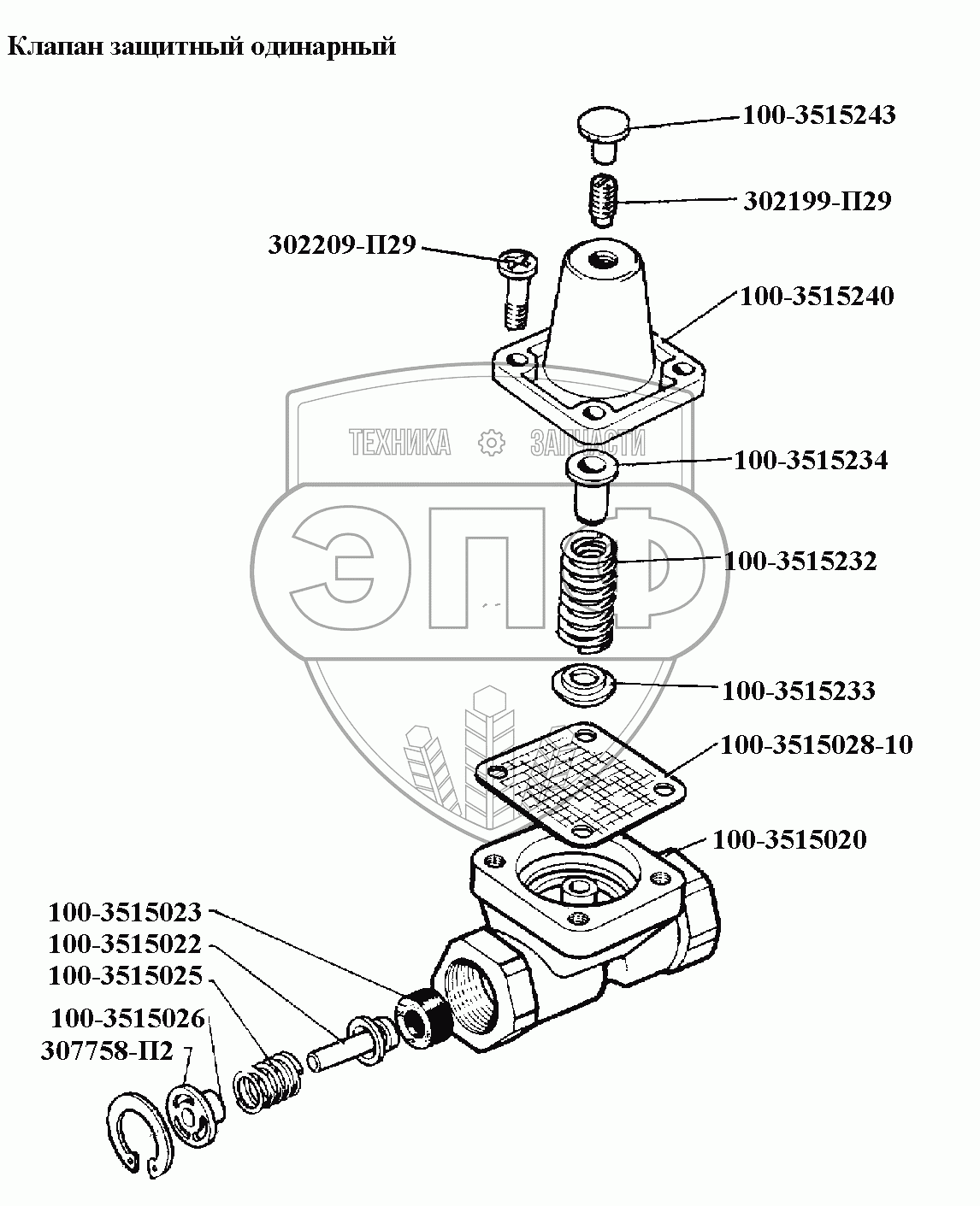 Каталог запасных частей к технике: ЗИЛ-431416. Тормоза\Клапан защитный одинарный