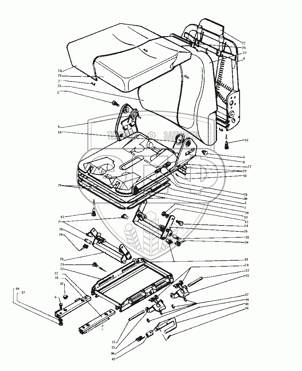 Каталог запасных частей к технике: ЗИЛ-43272Н, 43273Н. Сиденье водителя