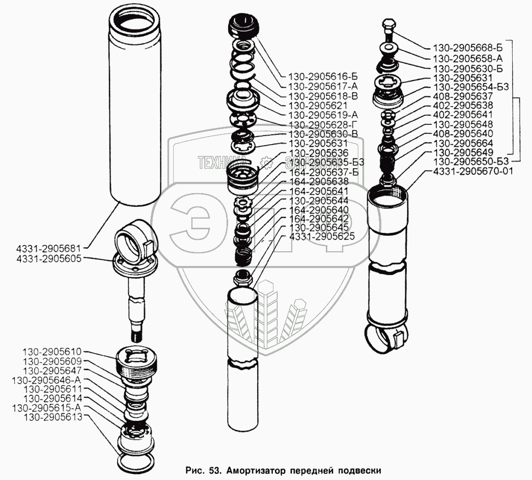 Каталог запасных частей к технике: ЗИЛ-433110. Амортизатор передней подвески