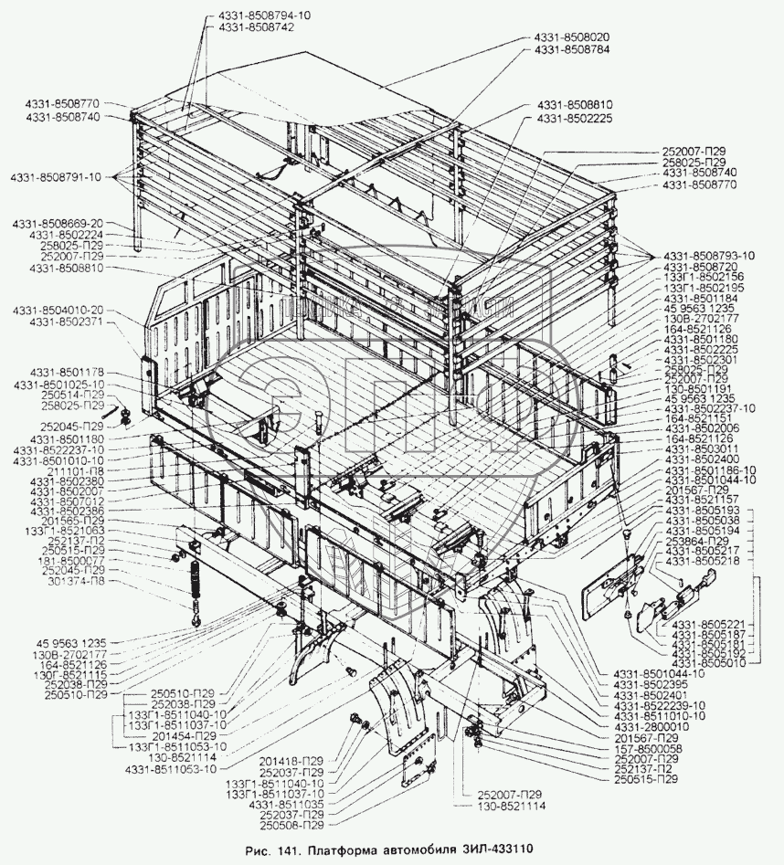 Каталог запасных частей к технике: ЗИЛ-433110. Платформа автомобиля ЗИЛ-433110